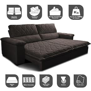 Com um design único e elegante, a linha BIG foi desenvolvida pra oferecer ainda mais conforto e prazer para relaxar a cada momento. O Sofá Retrátil e Reclinável Big Home tem uma exclusividade, seus encostos foram feitos com maior tamanho, dando total relaxamento ao sentar. Além disso, sua estrutura têm a estabilidade necessária para esse tipo de estofado, contendo em sua composição o enchimento em Espuma D33 mais ThermoGel, oferecendo uma sensação refrecante e aconchegante, além disso ele conta com Molejo Duplo de Molas Ensacadas mais Molas Bonnel e Percintas Extra Suport, tudo isso para dar o suporte necessário para o conforto. Garanta já o seu modelo e dê um UP no visual da sua sala!