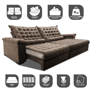 Um modelo exclusivo da Linha BIG, este sofá foi desenvolvido com encostos Mega Gigantes e assentos maiores em relação ao mercado, o Sofá Retrátil e Reclinável Big Space foi desenvolvido para trazer para sua sala charme e elegância, sem falar de seu conforto maravilhoso. Feito com uma estrutura interna resistente, esse modelo conta com a estabilidade necessária para esse tipo de móvel, enquanto o enchimento em espuma D33, Molas Ensacadas de Molejo Duplo e Percintas Extra Suport, dão o suporte necessário para o conforto, sendo perfeito para acomodar você e as pessoas que ama naquela maratona de séries, ou até mesmo para descansarem aos finais de semana. Tenha a sensação de ter um colchão em sua sala com o Sofá Retrátil e Reclinável Big Space!