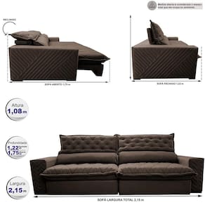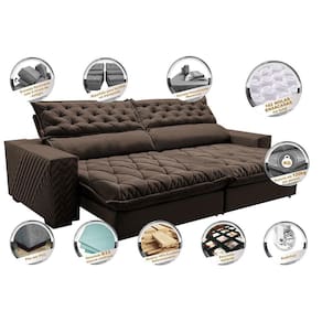 Sofá Retrátil e Reclinável 2,15m Molas Ensacadas Cama inBox Spazus. com Bordado 3D Velusoft - Marrom