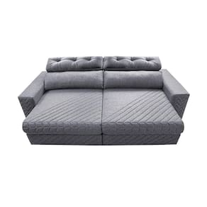 Sofá Retrátil E Reclinável 2,15m Molas Ensacadas Cama Inbox Style Thermo Gel Linho Cinza Claro