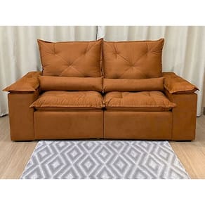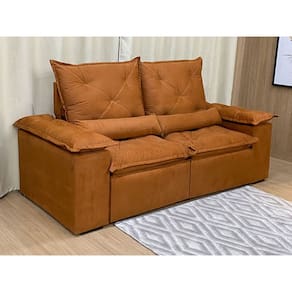 Sofá Retrátil e Reclinável 2,20m em Tecido Veludão C/ Pillow nos Braços Athenas - Laranja