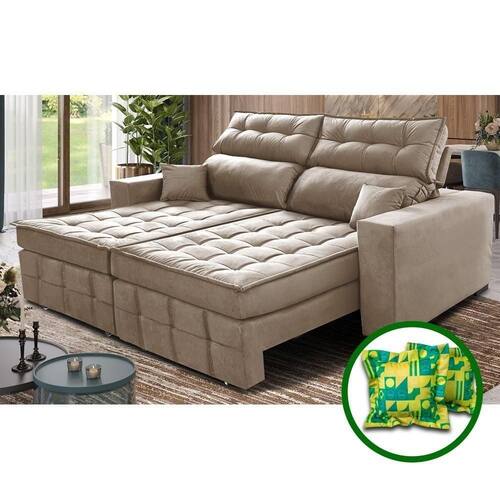 Sofá Retrátil E Reclinável 2,20m Molas Ensacadas E Costura Tripla Cama Inbox Japão Velft Bege