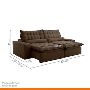 O assento de pillow com esuma elática e costura matelado. Possui mecanismo retrátil em aço que permite abertura do sofá para seu bem-estar.
