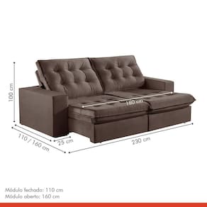 Escolher um bom sofá faz toda a diferença na sala de estar, não é? Para deixar seu ambiente receptivo e bem decorado, aposte no modelo M165! Ele conta com assento retrátil e encosto reclinável, que são ótimos na hora de esticar as pernas e curtir um filminho, tirar uma soneca depois do almoço ou simplesmente relaxar após um dia atarefado. E, para proporcionar mais aconchego aos seus momentos de lazer, é revestido em Veludo, tecido que confere maciez ao toque. Tudo isso composto em um visual clássico que destaca a coloração sóbria e torna o móvel fácil de harmonizar com os outros itens do cômodo. Daí, é só juntar todo mundo e curtir seu lar-style acolhedor ;) Acompanha Almofadas extras: Não Almofada do assento: Fixa Almofada do encosto: Fixa Altura do assento até o chão: 64 Altura do Encosto: 37 Altura dos Pés: 2.5 Ambiente Principal: Sala de Estar Complexidade da Montagem: Baixa: pode ser montado por uma pessoa sozinha Cor: Veludo/Marrom Escuro Cor do Produto: Veludo/Marrom Escuro Densidade do Assento: D-28 Densidade do Encosto: D-18 Enchimento do Assento: Espuma Enchimento do Encosto: Fibra Siliconada Estilo de Braço: Braços Quadrados Firmeza do Assento: Firme Informações Complementares: Encosto Reclinavel 100% De Fibras De Silicone Itens Inclusos: 1 Sofá e 1 Manual de Instrução. Material dos Pés: Madeira Necessita Montagem: Sim Origem do Produto: Nacional Peso: 89.5 Pet Friendly: Não Possui Percintas Elásticas: Sim Possui Pés: 04 Possui Rodízio: Sim Profundidade Quando Estendido: 160 Recomendações de Uso, Manutenção e Limpeza: Limpar com pano limpo e seco ou levemente umidecido em água. Limpeza também poderá ser realizada com aspirador de pó. Não utilizar produtos químicos. Resistente à Chuva: Não Revestimento do Braço: Veludo Rodízio com Trava: Não Sistema de Montagem: Encaixe Suporta Até (kg): 120 Tecido Predominante: Veludo Tipo de Encosto: Regulável Tipo de Mola: Molas Ensacadas (Molas ensacadas) Marca: Estofados Martins Ean: 7909903407745