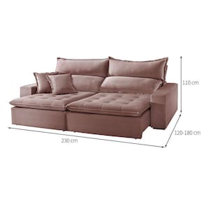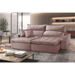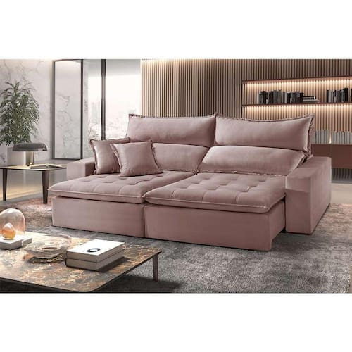 Características: Acompanha Almofadas extras: 02Almofada do assento: FixaAlmofada do encosto: FixaAltura do assento até o chão: 45Altura do Encosto: 65Altura dos Pés: 5Ambiente Principal: Sala de EstarComplexidade da Montagem: Baixa: pode ser montado por uma pessoa sozinhaCor: RosaCor do Produto: RosaDensidade do Assento: D-28Densidade do Encosto: Camadas de Densidades DiferentesEnchimento do Assento: Hyper SoftEnchimento do Encosto: Fibra SiliconadaEstilo de Braço: Braços QuadradosFirmeza do Assento: MédioInformações Complementares: Pillowtop de 12 cm no assento e almofadas decorativas acompanham o produto. Encosto com design bipartido.Itens Inclusos: 01 Sofá Retrátil e Reclinável BellaMaterial dos Pés: MadeiraMontagem Flex: Não aplicávelNecessita Montagem: NãoOrigem do Produto: NacionalPeso: 55Pet Friendly: NãoPossui Percintas Elásticas: SimPossui Pés: 08Possui Rodízio: SimProfundidade Quando Estendido: 180Recomendações de Uso, Manutenção e Limpeza: Utilizar pano levemente umedecido em água. Não expor diretamente à luz solar e não utilizar produtos abrasivos.Revestimento do Braço: VeludoRodízio com Trava: NãoSistema de Montagem: EncaixeSuporta Até (kg): 140Tecido Predominante: VeludoTipo de Encosto: RegulávelTipo de Mola: Molas Bonnel