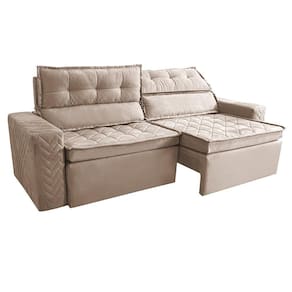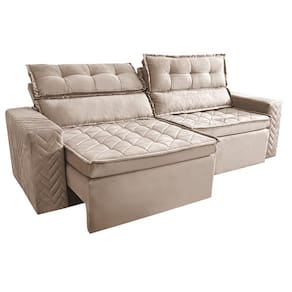 Sofá Retrátil E Reclinável 2,30m Cama Inbox Charm Velusoft Bege