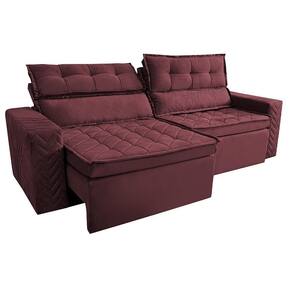 Sofá Retrátil E Reclinável 2,30m Cama Inbox Charm Velusoft Vinho