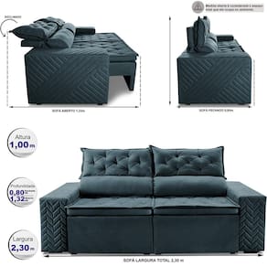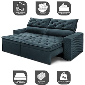 Sofá Retrátil e Reclinável 2,30m Essence. Velusoft Cama inBox - Azul Petróleo