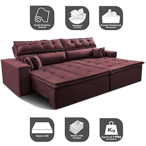 Sofá Retrátil E Reclinável 2,32m Luxos Cama Inbox Velusoft Vinho