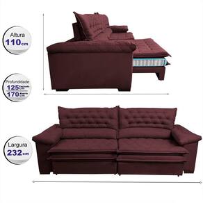 Sofá Retrátil e Reclinável 2,32m Molas Ensacadas Cama inBox Alemanha. com Viscoelástico Velusoft - Vinho