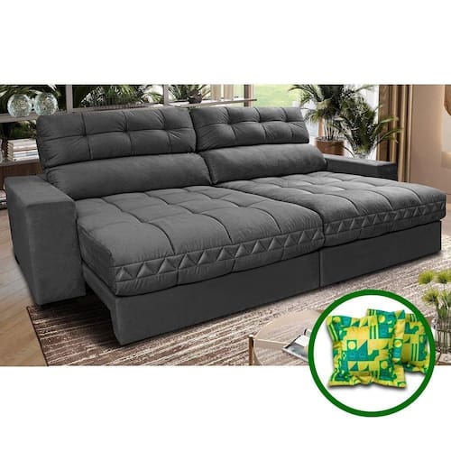Sofá Retrátil E Reclinável 2,32m Molas Ensacadas Cama Inbox Brasil Velusoft Cinza