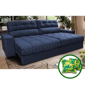 Sofá Retrátil e Reclinável 2,32m Molas Ensacadas Cama inBox Brasil. Velusoft - Azul Marinho
