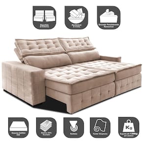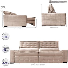 Apresentamos o incrível Sofá Retrátil e Reclinável Big Puffer, da exclusiva linha BIG! Com encostos mega gigantes e assentos espaçosos, este sofá foi projetado para proporcionar charme, elegância e um conforto incomparável à sua sala de estar. Sua estrutura interna resistente garante a estabilidade necessária para um móvel de alta qualidade, enquanto o enchimento em espuma SoftGel D40, Dupla Camada de Manta Siliconada e Percintas Extra Suport oferecem o suporte necessário para o máximo conforto. Com o Sofá Retrátil e Reclinável Big Puffer, você pode desfrutar para maratonar séries ou relaxar nos finais de semana com as pessoas que ama. Imagine-se em um colchão luxuoso, diretamente na sua própria sala de estar! Não deixe de adquirir esse modelo exclusivo e elevar o nível de conforto e sofisticação da sua casa. Venha conferir o Sofá Retrátil e Reclinável Big Puffer e descubra o verdadeiro significado de relaxamento!