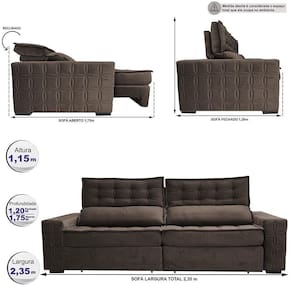 Sofá Retrátil E Reclinável 2,35m Cama Inbox Big Star Com Softgel D40 Velupluma Café