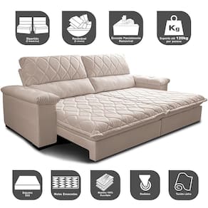 Espuma ThermoGel: Contem partículas de gel em sua estrutura que não absorve calor do corpo, mantendo sempre o sofá com a sensação FRESH e Aconchegante.