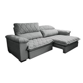 Sofá Retrátil E Reclinável 2,35m Molas Ensacadas Cama Inbox Big Home Bordado 3d Linho Cinza Claro