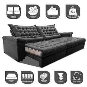 Sofá Retrátil e Reclinável 2,35m Molas Ensacadas Cama inBox Big Space. com Bordado 3D Velusoft - Cinza