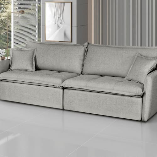 Estrutura em eucalipto, tecido em linho, pés de madeira.Vendido e entregue por MadeiraMadeira