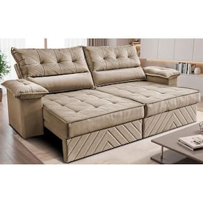 Sofá Retrátil E Reclinável 2,40m Com Molas E Espuma D33 Thunder. Velusoft Cama Inbox Bege