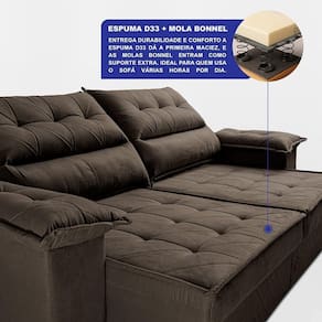 Sofá Retrátil E Reclinável 2,40m Com Molas E Espuma D33 Thunder. Velusoft Cama Inbox Café