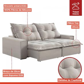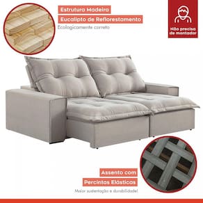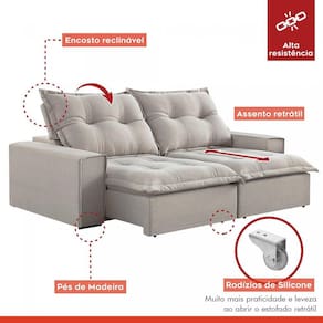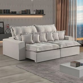A sua sala de estar só está completa na presença de um bom sofá e nada mais gostoso do que receber a família ou curtir os seus momentos de descanso junto.! Pensado para quem quer aliar bom gosto mais uma estrutura reforçada para o uso diário, a peça tem madeira de eucalipto na composição e revestimento de toque agradável com o corpo para garantir que a receptividade seja plena. Já o visual elegante de coloração tradicional a esse tipo de móvel fecha com chave de ouro os benefícios que ele oferece para o seu doce lar ;) Acompanha Almofadas extras: 06 Almofada do assento: Fixa Almofada do encosto: Fixa Altura do assento até o chão: 47 Altura do Encosto: 32 Altura dos Pés: 2 Ambiente Principal: Sala de Estar Complexidade da Montagem: Baixa: pode ser montado por uma pessoa sozinha Cor: Linho/Cinza Claro Cor do Produto: Linho/Cinza Claro Densidade do Assento: D-28 Densidade do Encosto: D-18 Enchimento do Assento: Espuma Enchimento do Encosto: Fibra Siliconada Estilo de Braço: Braços Largos Firmeza do Assento: Firme Informações Complementares: Itens Inclusos: 1 Sofá e Manual de Montagem Largura do Sofá Maior: Linha ou Coleção: Manual de Especificação Técnica: Manual de Montagem e Instalação: https://cdn2.madeiramadeira.com.br/atributo/martins-estofados/896789-manual-de-montagem-martins.pdf Material dos Pés: Madeira Montagem Flex: Necessita Montagem: Sim Origem do Produto: Nacional Peso: 110 Pet Friendly: Não Possui Percintas Elásticas: Sim Possui Pés: 08 Possui Rodízio: Sim Profundidade Quando Estendido: 180 Recomendações de Uso, Manutenção e Limpeza: Limpar com flanela limpa e seca. Não usar produtos abrasivos. Resistente à Chuva: Não Revestimento do Braço: Linho Rodízio com Trava: Não Sistema de Montagem: Encaixe Suporta Até (kg): 120 Tamanho: Tecido Predominante: Linho Tipo de Encosto: Regulável Tipo de Madeira Maciça da Estrutura: Eucalipto Tipo de Mola: Molas Ensacadas (Pocket)