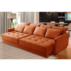 Sofá Retrátil e Reclinável 2,50m Mariah Veludo Terracota Madelina Decor - Bronze