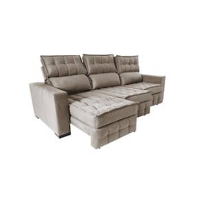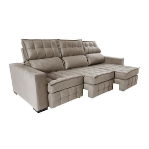 Sofá Retrátil E Reclinável 2,50m Molas Ensacadas E Costura Tripla Cama Inbox Nobre Suede Bege