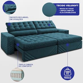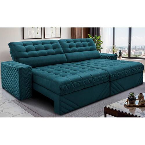 Sofá Retrátil e Reclinável 2,50m Molas Ensacadas Max Spring. Velusoft Cama inBox