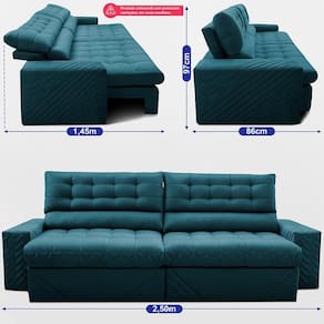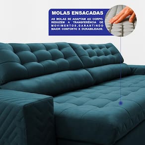 Sofá Retrátil e Reclinável 2,50m de Molas Ensacadas Max Spring Velusoft Cama inBoxConforto premium, preço acessível e design único que transforma sua sala. O Sofá Retrátil e Reclinável Max Spring é a escolha perfeita para quem busca conforto absoluto e durabilidade premium. Combinando a espuma de alta qualidade com a sustentação das Molas Ensacadas e Molas Bonnel, este modelo oferece uma experiência única de relaxamento. Cada assento e encosto se adapta ao corpo de forma inteligente, proporcionando apoio anatômico e eliminando a sensação de afundamento ou desconforto.Invista nessas tecnologias do Sofá Retrátil e Reclinável Max Spring:ConfortTech: Tripla Camada de Conforto InteligenteO Sofá Max Spring conta com o sistema exclusivo ConfortTech, que combina Molas Ensacadas, Espuma D33 com Tecnologia ThermoGel e Fibra Siliconada. Essa união garante sustentação anatômica, frescor constante e maciez duradoura. Um sofá pensado para acompanhar sua rotina e transformar cada momento em descanso de alto padrão.SoftBlend 3D: Design que impressionaO acabamento exclusivo SoftBlend 3D traz sofisticação incomparável ao sofá. Seus bordados pantográficos em alto-relevo, aliados ao matelassê de manta de fibra siliconada compactada com espuma soft, criam um visual elegante e aconchegante. Cada detalhe foi pensado para adicionar personalidade e transformar sua sala em um ambiente moderno, confortável e cheio de charme.Estrutura completa e duradoura- Assento Retrátil: Espuma D33 com ThermoGel, molas ensacadas e bonnel, fibra siliconada e percintas Extra Support. Combinação que garante conforto imediato, molejo ideal e resistência superior.- Encosto Reclinável: Reclinável em 5 posições, com almofadas parcialmente removíveis em 80% fibra siliconada e 20% flocos de espuma, oferecendo suporte ergonômico e maciez envolvente.- Braços: Madeira maciça de eucalipto, 25 cm de largura e acabamento SoftBlend 3D para unir resistência e sofisticação.- Estrutura: Madeira maciça de reflorestamento com grampos galvanizados, reforço que garante firmeza e longa durabilidade.- Tecido: Exclusivo Suede Velusoft, toque macio e aconchegante, perfeito para qualquer decoração.Dimensões do Sofá Retrátil MontadoAltura: 0,97mProfundidade fechado: 0,86mProfundidade aberto: 1,45mLargura: 2,50mMedidas disponíveis: 2,30m, 2,50m, 2,70m e 3,00mCores disponíveis: Azul, Bege, Café, Castor, Cinza, Petróleo, Preto, Vermelho e VinhoPor que escolher o Sofá Retrátil e Reclinável Max Spring?- Não sinta a estrutura com a nossa exclusiva tecnologia ConfortTech que combina espuma D33 com ThermoGel, molas ensacadas e molas bonnel para oferecer conforto absoluto.- Assento Retrátil confortável por muito mais tempo: não afunda, mantém a qualidade e o suporte mesmo após anos de uso.- Conforto ergonômico de verdade: encosto reclinável em 5 posições mais almofadas de fibra siliconada que se moldam ao corpo.- Feito para durar: estrutura em madeira maciça de reflorestamento, resistente ao uso do dia a dia.- Beleza que transforma sua sala: acabamento exclusivo em SoftBlend 3D com tecido Velusoft, união perfeita de sofisticação e aconchego.- Custo-benefício acessível: um sofá retrátil e reclinável com tecnologias de modelos premium por um preço direto de fábrica.Informações extras- Produto já vai montado, não acompanha rodízios. - Peso suportado: até 120kg por pessoa- Garantia: 6 meses (3 meses de garantia legal + 3 meses de garantia da Cama inBox)- Entra facilmente em portas, corredores e elevadores acima de 65 cm de larguraInformações importantes- As tonalidades dos tecidos podem variar de acordo com o lote de produção e também pela resolução da tela do seu monitor ou celular.- Por se tratar de um produto artesanal, podem ocorrer pequenas variações nas medidas de largura, altura ou profundidade.- Objetos de decoração utilizados nas fotos não acompanham o produto.- Nossos produtos seguem um padrão de fabricação, não sendo possível realizar personalizações.- A Cama inBox realiza a entrega até a porta de entrada (casas) ou portaria (prédios). A partir desse ponto, o transporte até o local de uso é de responsabilidade do cliente. Importante: as transportadoras não sobem escadas ou elevadores. Caso ocorram danos durante esse deslocamento interno, a responsabilidade será do cliente.Garanta agora o Sofá Retrátil e Reclinável de Molas Ensacadas Max Spring e descubra que é possível ter o conforto de um sofá premium com preço de fábrica.