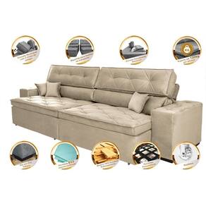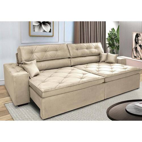 Sofá Retrátil e Reclinável 2,52m Cama inBox Estilo. Suede - Bege