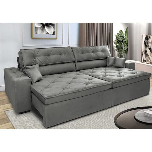 Sofá Retrátil E Reclinável 2,52m Com Molas Cama Inbox Estilo Suede Velusoft Cinza