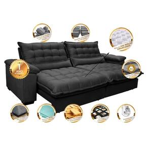 Sofá Retrátil e Reclinável 2,52m com Molas Ensacadas Cama inBox Aconchego Tecido Suede Preto