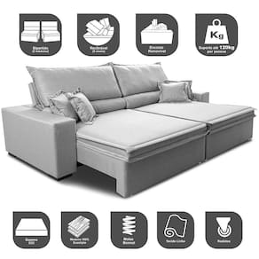Espuma ThermoGel: Contem partículas de gel em sua estrutura que não absorve calor do corpo, mantendo sempre o sofá com a sensação FRESH e Aconchegante.