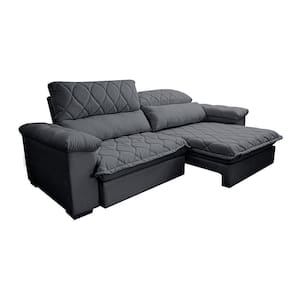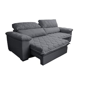 Sofá Retrátil E Reclinável 2,55m Molas Ensacadas Cama Inbox Big Home Bordado 3d Linho Cinza Escuro