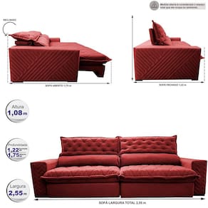 Embeleze e complemente sua sala com a ajuda do maravilhoso Sofá Retrátil e Reclinável Spazus. Com uma estrutura interna resistente, ele possui a estabilidade necessária para esse tipo de móvel, enquanto o enchimento em espuma D33, molas ensacadas de molejo duplo e percintas italianas, dão o suporte necessário para o conforto, sendo perfeito para acomodar você e as pessoas que ama naquela maratona de séries, ou até mesmo para descansarem aos finais de semana. Dê um up no visual da sua casa. Demais, né? Garanta já o seu!
