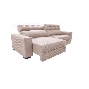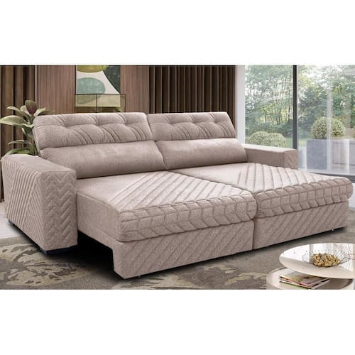 Sofá Retrátil E Reclinável 2,55m Molas Ensacadas Cama Inbox Style Thermo Gel Linho Bege Claro