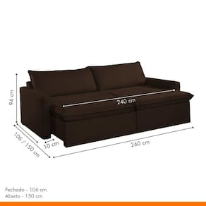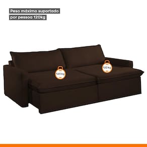 O assento de pillow com espuma de 15cm. Possui mecanismo retrátil em aço que permite abertura do sofá para seu bem-estar.