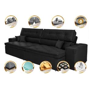 Sofá Retrátil e Reclinável 2,72m Cama inBox Estilo. Suede - Preto