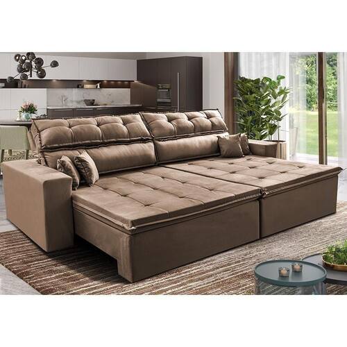 Sofá Retrátil E Reclinável 2,72m Luxos Cama Inbox Velusoft Castor