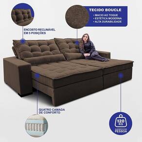 Sofá Retrátil E Reclinável 2,72m Molas Ensacadas Belle. Boucle Cama Inbox Marrom