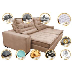 Sofá Retrátil e Reclinável 2,72m Molas Ensacadas Cama inBox Catar. Velusoft - Bege