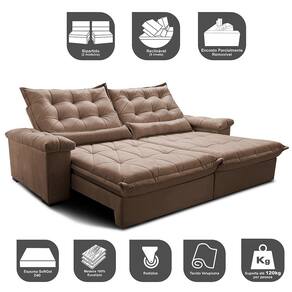 O Sofá Retrátil e Reclinável Big Fresh da Linha BIG é um modelo exclusivo que oferece encostos Mega Gigantes e assentos maiores em relação ao mercado. Ele foi desenvolvido para proporcionar charme, elegância e um conforto maravilhoso à sua sala. Sua estrutura interna resistente oferece a estabilidade necessária para este tipo de móvel, enquanto o enchimento em Espuma SoftGel D40 e Percintas Extra Suport dão o suporte necessário para o conforto. Com este sofá, você poderá maratonar séries ou descansar aos finais de semana com as pessoas que ama. Sinta-se como se estivesse em um colchão na sua própria sala com o Sofá Retrátil e ReclinávelBigFresh!
