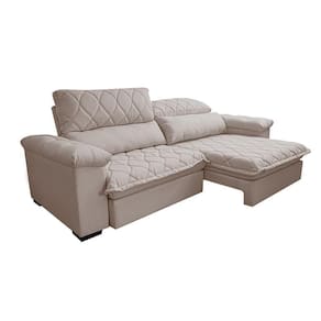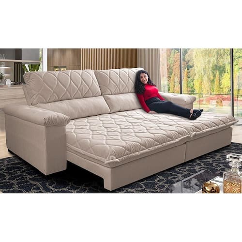 Sofá Retrátil E Reclinável 2,75m Molas Ensacadas Cama Inbox Big Home Bordado 3d Linho Bege Claro