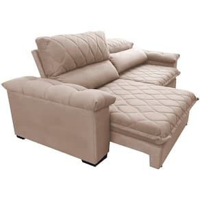 Sofá Retrátil E Reclinável 2,75m Molas Ensacadas Cama Inbox Big Home Com Bordado 3d Velusoft Bege