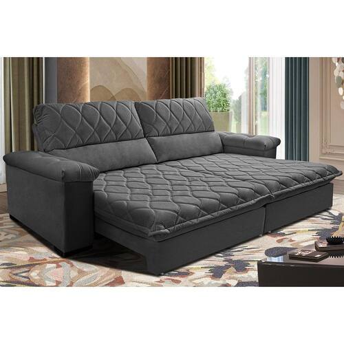 Sofá Retrátil e Reclinável 2,75m Molas Ensacadas Cama inBox Big Home. com Bordado 3D Velusoft - Cinza