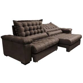 Sofá Retrátil E Reclinável 2,75m Molas Ensacadas Cama Inbox Big Space Com Bordado 3d Velusoft Café