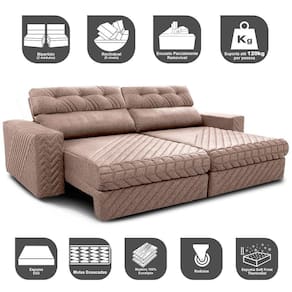 Sofá Retrátil e Reclinável 2,75m Molas Ensacadas Cama inBox Style. Thermo Gel Linho - Bege Médio
