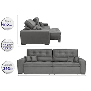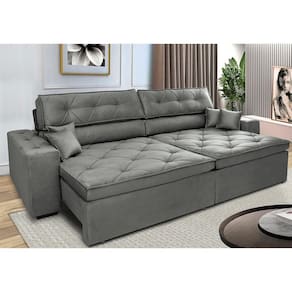 Sofá Retrátil e Reclinável 2,92m Cama inBox Estilo. Suede - Cinza
