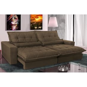 Sofa Retrátil E Reclinável 2,92m Com Molas Ensacadas Cama Inbox Soft Tecido Suede Café Chegou o Maravilhoso Sofá Retrátil e Reclinável Cama inBox Soft com Molas Ensacadas. O que o torna especial são assentos com molas ensacadas e espuma D33 Soft envolvidas em fibra Siliconada Compactada para que tenha um toque gostoso e aconchegante, produto com espumas + molas + mantas de fibra siliconadas. Bordado especial em alto relevo com espuma Visco látex, designer com puxes que o embelezam, proporcionando conforto de um colchão em um Belíssimo Sofá. Sua sala jamais será como antes! Características: -Encosto Reclinável com 5 posições, almofadas fixas compostas de 80% fibra siliconada e 20% flocos de espuma e percintas elasticas para maior conforto. -Assentos: Retráteis com espuma D33 soft envolvidas em fibra SILICONADA compactada, Molas ensacadas, percintas Pneumáticas com feltro para proteger do atrito com as molas. -Braços: Com 25cm de largura e com espuma D23. -Fixação: Grampos galvanizados -Estrutura de Madeira maciça 100% eucalipto de reflorestamento, produto ecologicamente correto -Tecido suede com toque aveludado -Pés em PVC