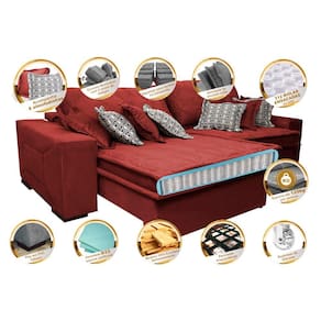 Sofá Retrátil e Reclinável 2,92m com Molas Ensacadas Cama Inbox Supreme Tecido Suede Velusoft Vermelho